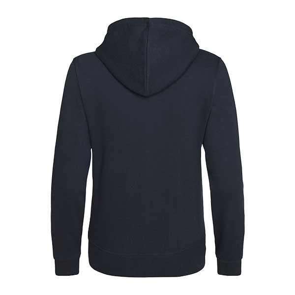 Sweat-shirt à capuche à zip intégral de coupe féminine Zip dissimulé dans la continuité du tissu et détails en surpiqûres doubles. Capuche à double épaisseur de tissu avec cordon de la même couleur et poche frontale kangourou. Petite ouverture cachée pour y faire passer les fils d'oreillettes avec des passants cachés pour y faire passer les fils d'oreillettes dans la poche de droite. Bords de manche et bord inférieur côtelés larges et détail côtelé de la bordure de la poche principale pour plus de confort. Tirette en ruban sergé de la même couleur. Production certifiée WRAP (Worldwide Responsible Accredited Production)